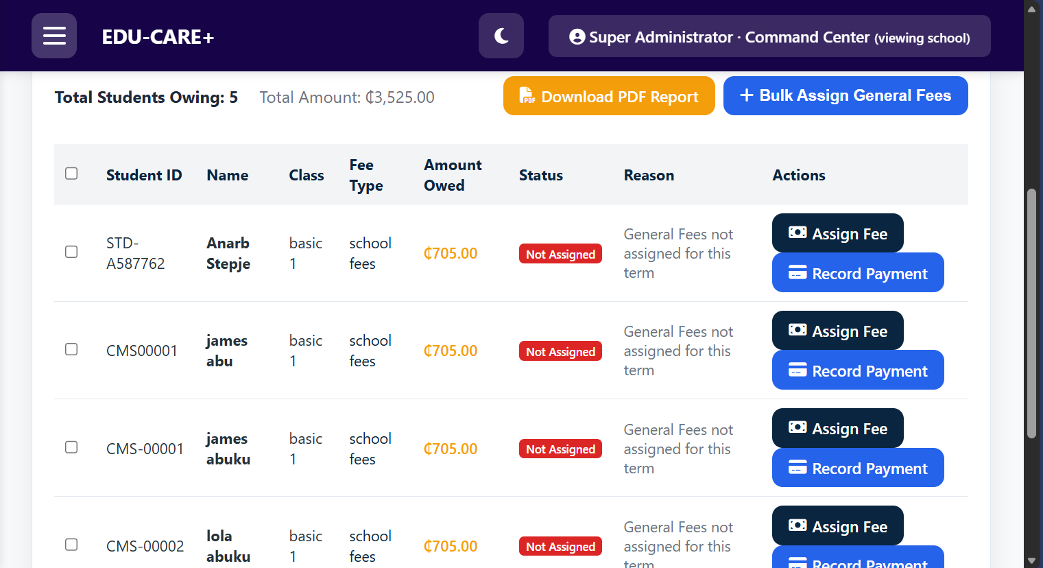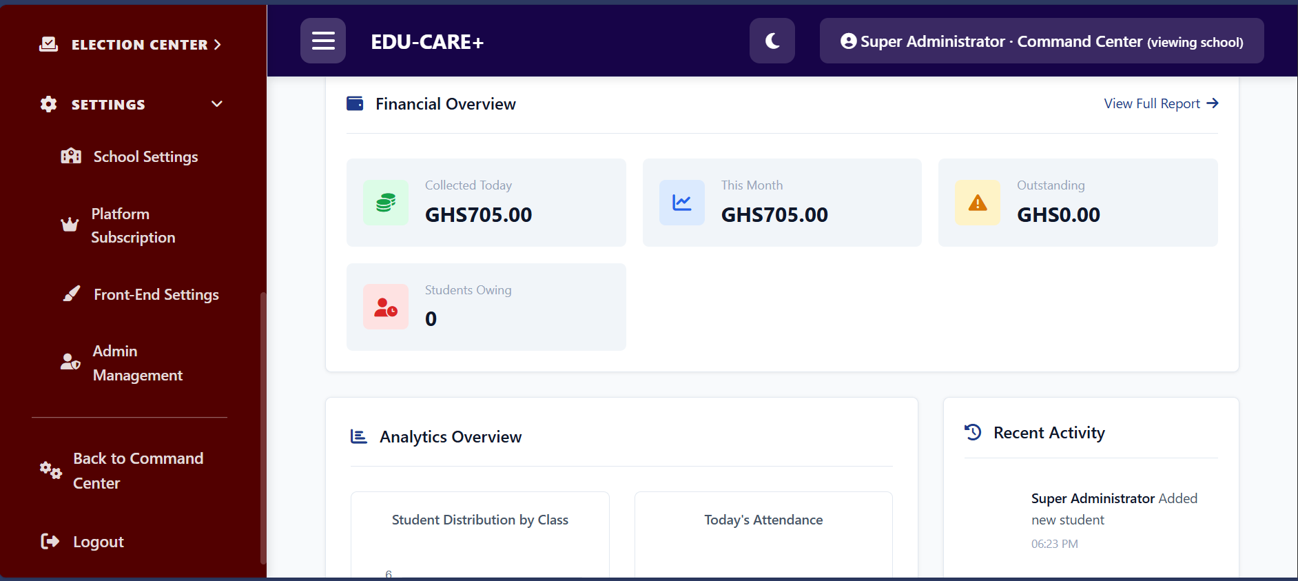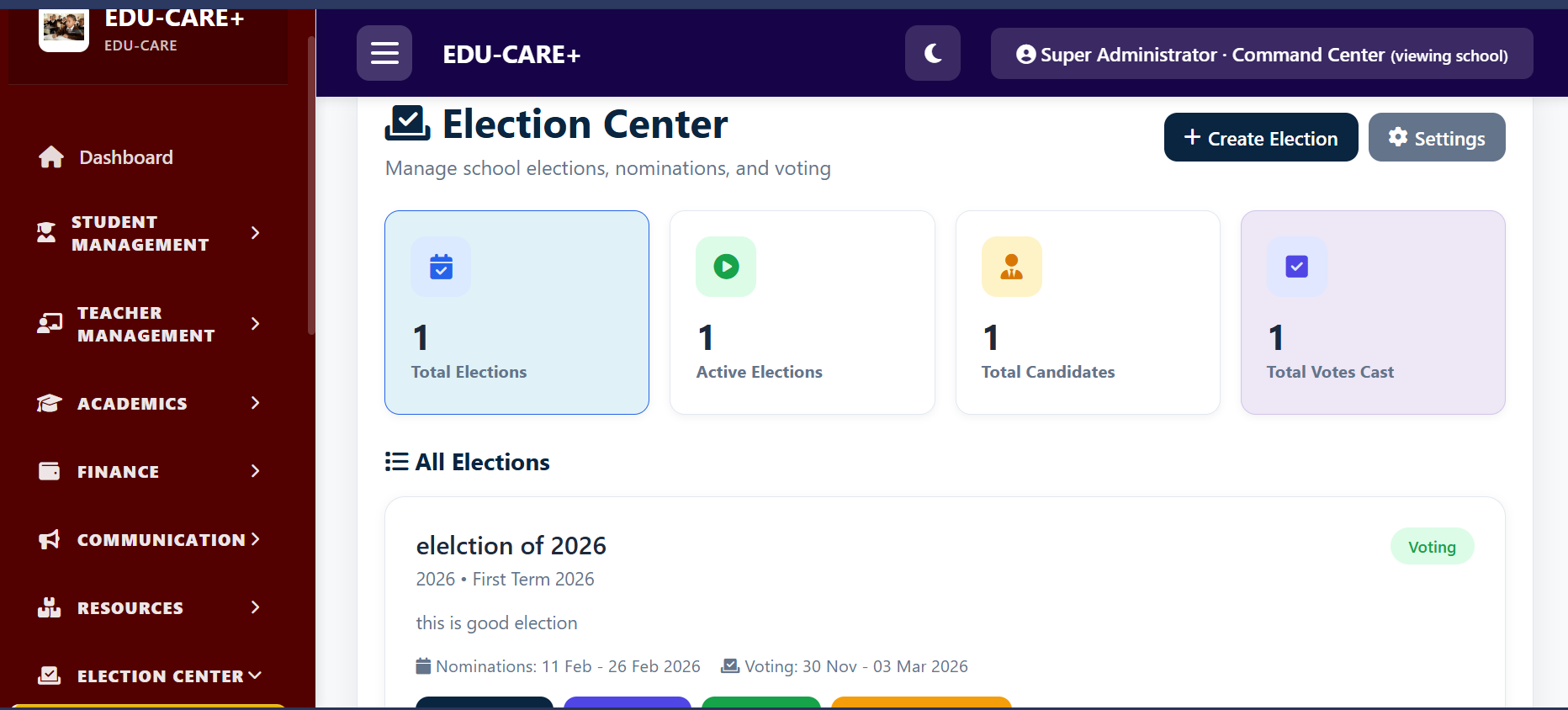 See the EDU-CARE platform in action. Dashboard, reports, fees, SMS, voting, and more—all in one place for your school.
