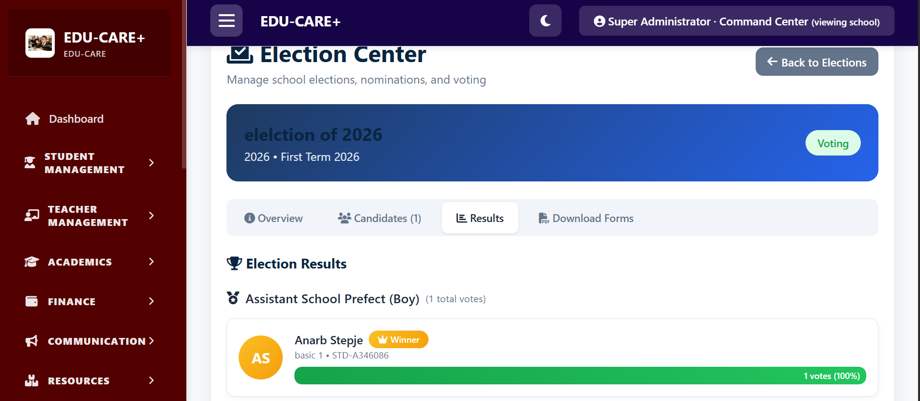 See the EDU-CARE platform in action. Dashboard, reports, fees, SMS, voting, and more—all in one place for your school.